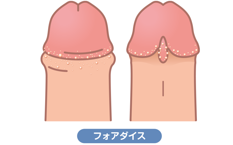 フォアダイスは、陰茎に毛包とは関係のない皮脂腺が、白または黄褐色のブツブツ形状でできる状態です。