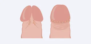 真珠様陰茎小丘疹は、亀頭カリ首を取り囲むように、細かいブツブツが列状に並んでいる状態です。