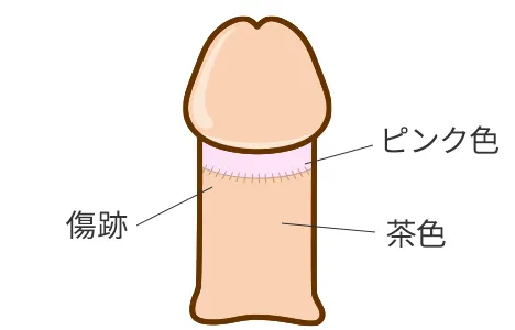 包茎手術の修正は、目立つ傷跡を部分的に取り除き、美容外科的な手技で亀頭の真下で縫合することにより、皮のかぶりやツートンカラーをなくすという方法を行ないます。